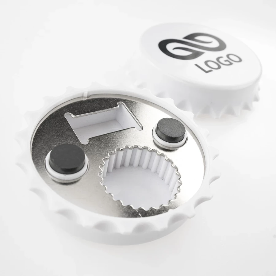 Kappenöffner - verbindet Funktionalität, originelles Design und Werbung. Er kann verwendet werden, um Verschlüsse abzureißen, Plastikflaschen zu öffnen (dank eines speziellen Lochs) oder als dekorativer Magnet eine Magnettafel oder die Front des Kühlschranks zu schmücken. Dieses Gadget ist bedruckbar und wirbt so für Ihre Marke. Ungewöhnlicher Öffner ist mit Sicherheit das perfekte Geschenk für Kunden und Klienten, z. B. bei zwanglosen Treffen, teambildenden Veranstaltungen oder anderen Firmenevents. Sie werden von dem Einfallsreichtum und der minimalistischen Form Ihres Werbegeschenks begeistert sein.