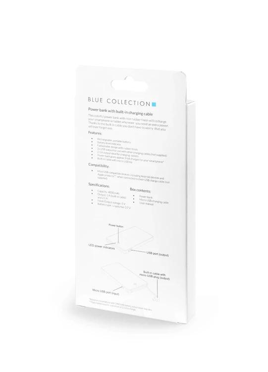 Die VIVID 4000 mAh Powerbank ist ein modernes Werbegeschenk, das Funktionalität und Ästhetik vereint und ein praktisches Geschenk für Kunden und Geschäftspartner darstellt. Dank des schlanken Designs und der gummierten Oberfläche ist das Gerät nicht nur handlich, sondern liegt auch angenehm in der Hand. Das integrierte Micro-USB-Kabel und der zusätzliche USB-Anschluss ermöglichen das gleichzeitige Aufladen von zwei Geräten und erhöhen die Alltagstauglichkeit. Darüber hinaus ermöglicht die Möglichkeit des vollfarbigen UV-Drucks auf der Oberfläche der Powerbank eine effektive Markenwerbung.